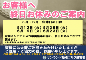 ●バンカー・グリーン場のご利用は予告なく中止させて頂く場合がございますので予めご了承の程お願い申し上げます。